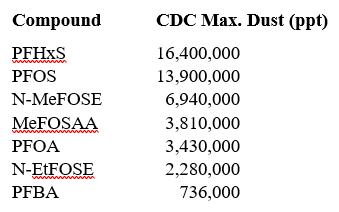 We have learned from the CDC’s robust sampling of dust near military installations across the country that dust levels in homes adjacent to military bases contain high levels of the carcinogens.