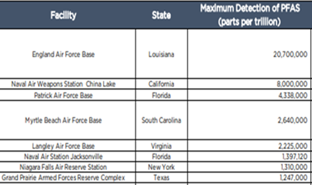 Highest Levels of PFAS Contamination in Groundwater at U.S. Military Installations