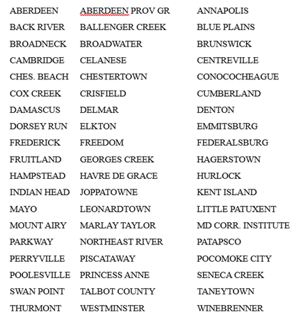 I have not received results of any testing from the wastewater facilities in Maryland shown here.