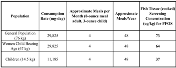 MDE-calculated risk-based screening concentration for PFOS for fish consumption