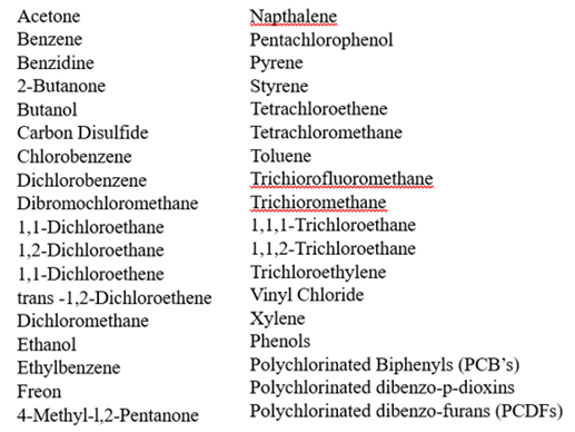 Organic Compounds analyzed in the Schofield Barracks Federal Facilities Agreement (FFA),